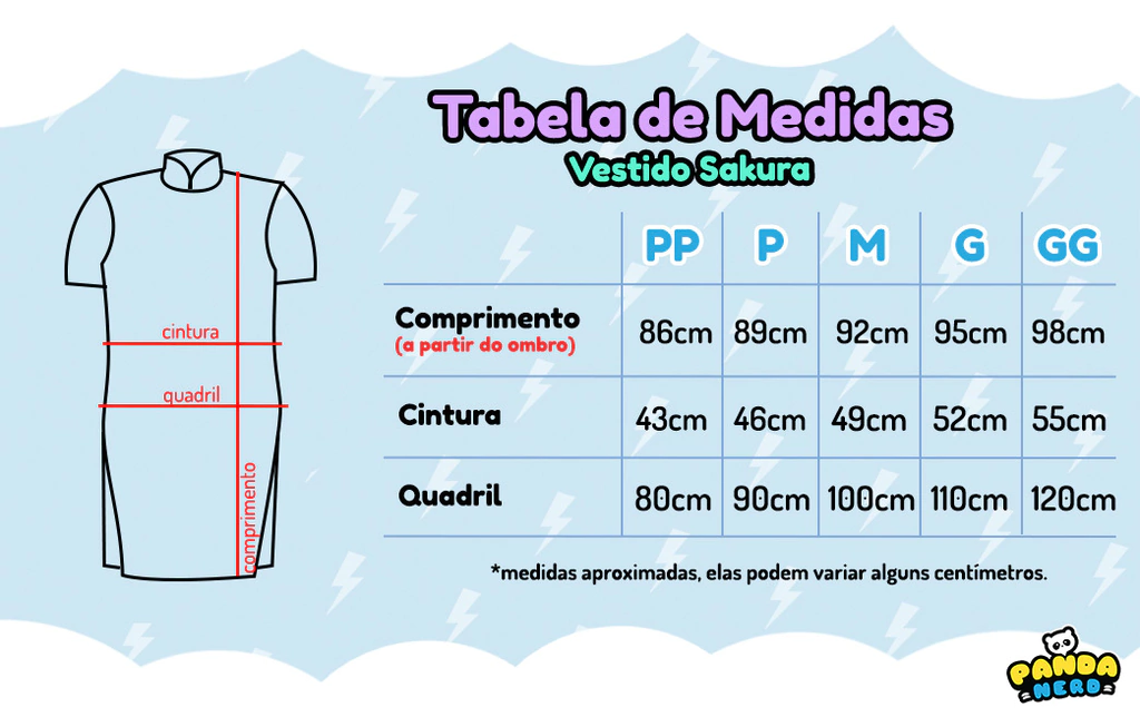 Disponíveis nos tamanhos: PP, P, M, G e GG.
